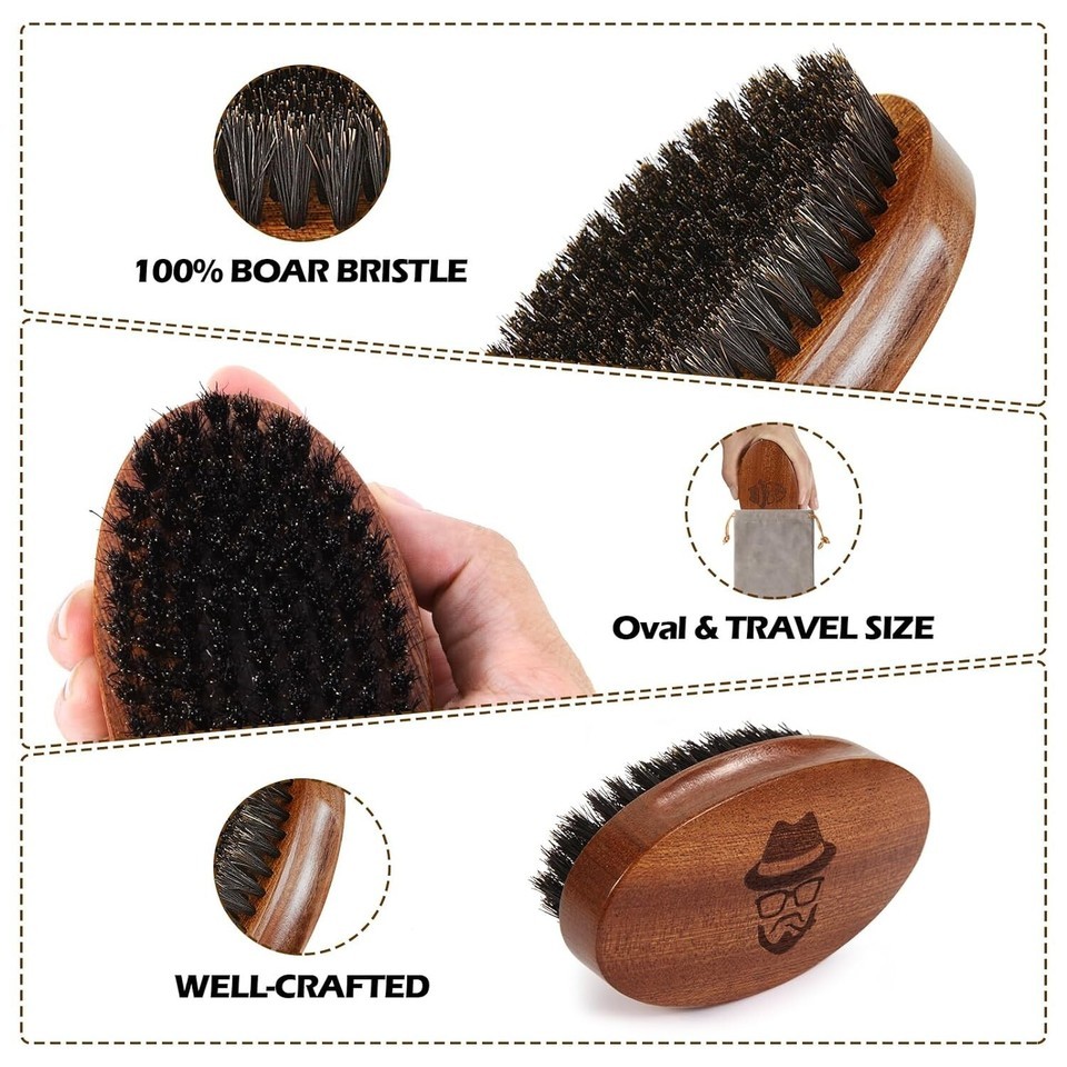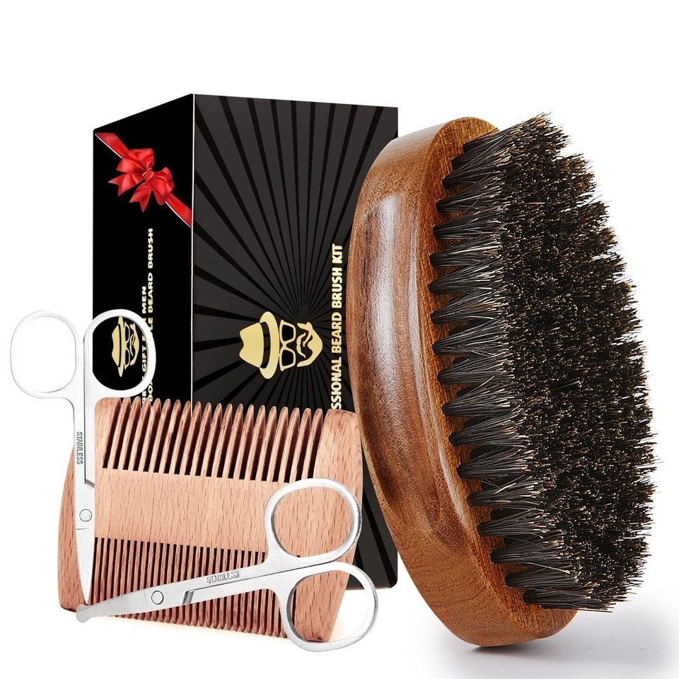 Boar Bristle Beard Brush for Men, Beards and Mustaches Grooming Set