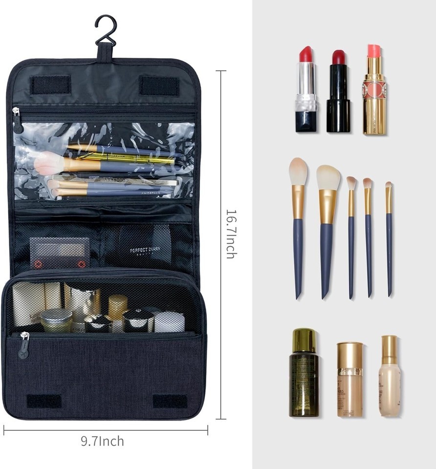 High QUALITY FABRIC: The toiletry bag is made of newly upgraded cationic 300D fabric, the surface is waterproof, wear-resistant, durable and practical. The toiletry bag can be hung on towel racks, coat racks and anywhere else available to save much space