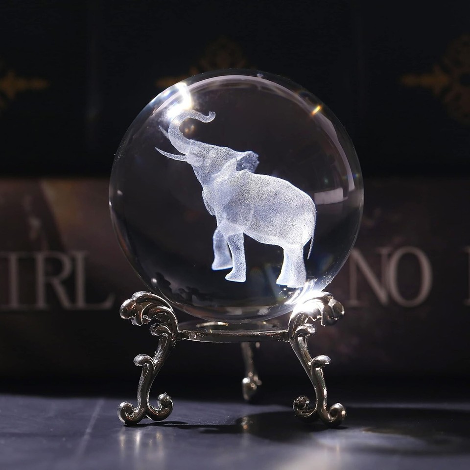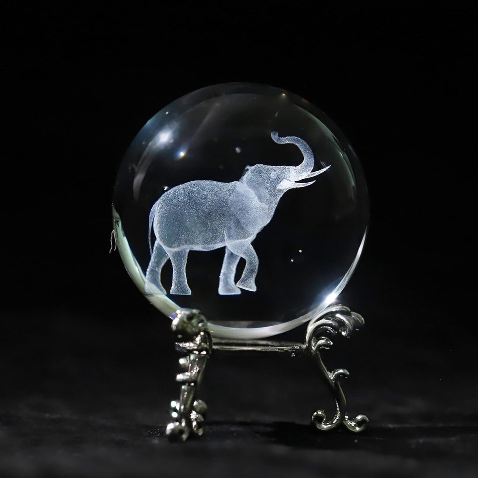small 3D Laser Crystal Ball Paperweight Lucky Elephant 2 Inch