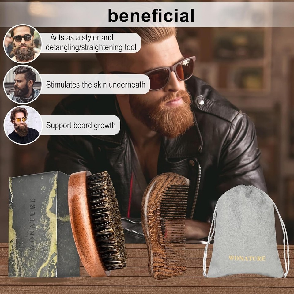 Ideal Men's Gift: The exclusive Wonature boar bristle beard brush and comb set is more than just a grooming tool ? it's a statement. Presented in a beautiful gift box, it makes a memorable present for special occasions like Father?s Day, Christmas, birthdays, or anniversaries, ensuring the men in your life always look their best.