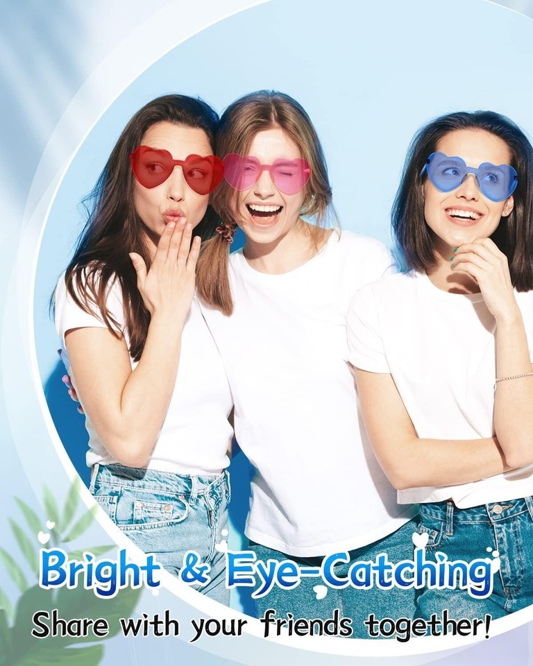 ??Versatile fun sunglasses?The heart sun glasses is suitable for pool and beach parties, summer parties,concert,cosplay,shopping,birthday,carnival,bachelorette parties,fun events or party favors.These cool party glasses will bring a lot of fun to your holiday!