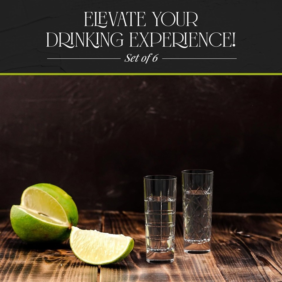 The 6-piece shot glass set is wonderful for everyday or celebrating any occasion like holiday and dinner parties, weddings, and bridal showers, etc. Or give it as a great hostess gift.