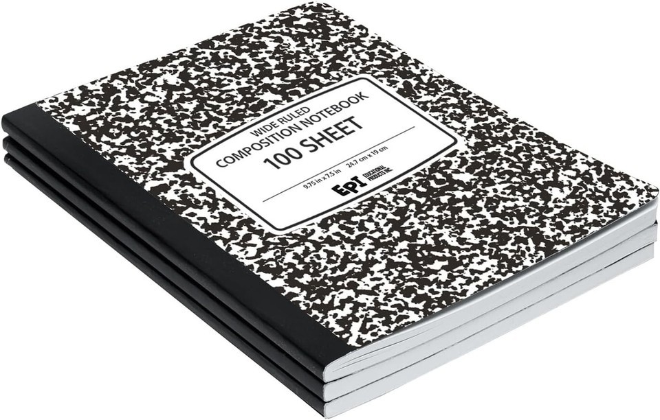 WIDE RULED COMPOSITION BOOKS: Each notebooks contains 100 double-sided, wide-ruled sheets (200 pages). The wide-ruled format makes taking notes easy and keeps handwriting neat.