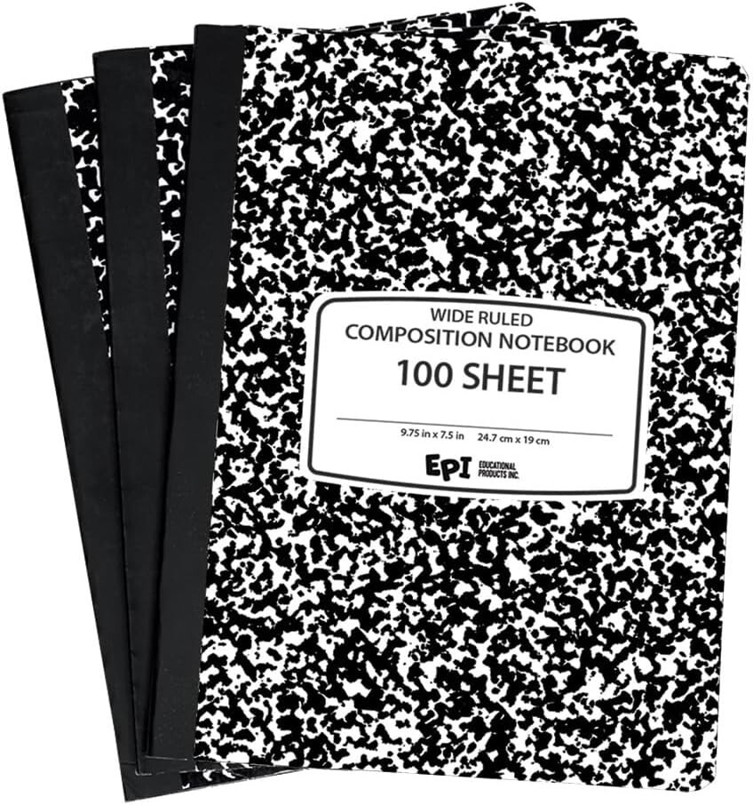 EPI 3 Pack Composition Notebook Wide Ruled, 200 Pages (100 Sheets) 9-3/4 x 7-1/2