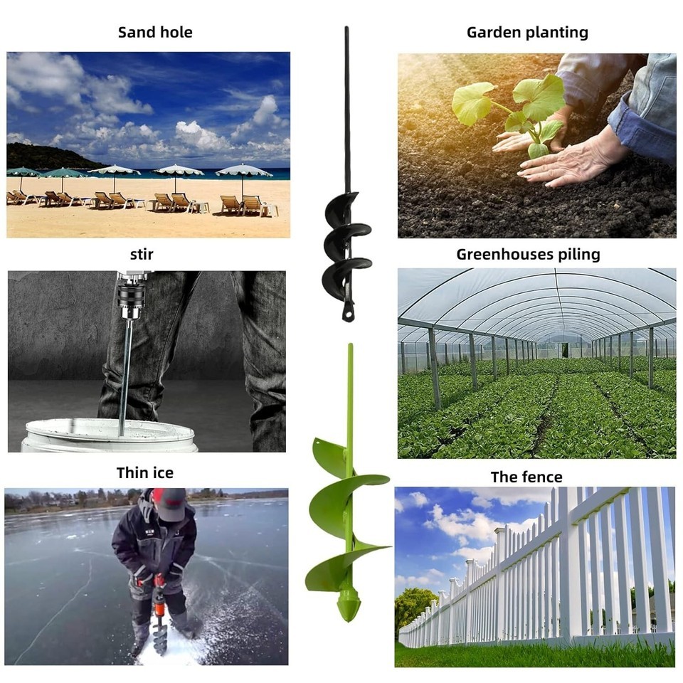 Not only widely used for planting bulbs, potted plants, vegetables, flowers, bare-root trees and shrubs, tilling soil or planter boxes, mixing seed, soil, fertilizer, paint, but also great for drilling a hole in sand to anchor your beach umbrella,drilling holes for hiking tents during outings.