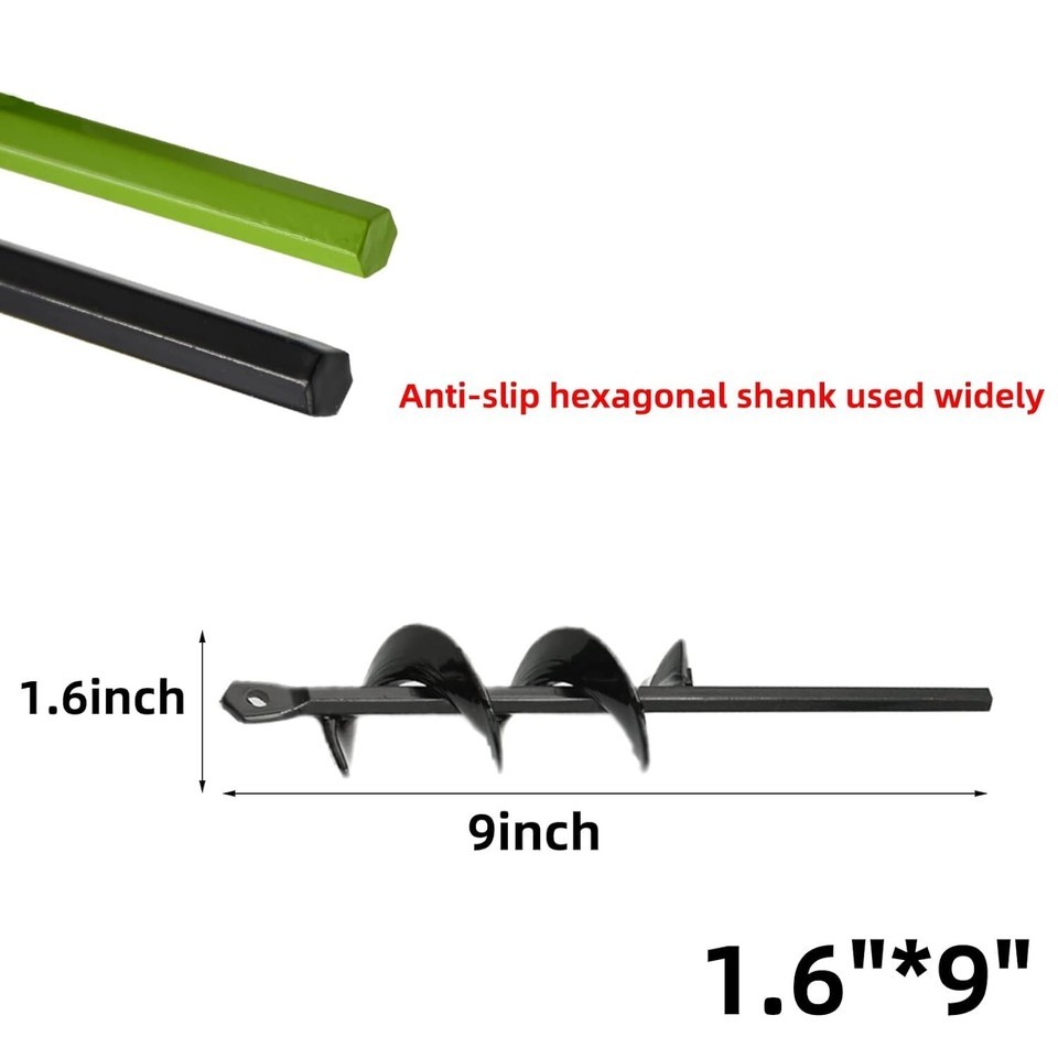 Auger Drill Bit for Planting 1.6x9inch Hole Digger for Any Hex Drive Drill