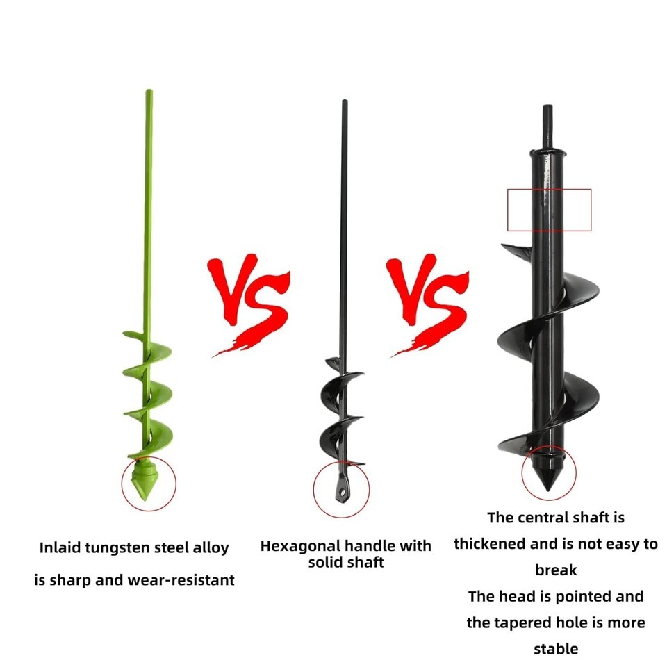 Made of heavy duty steel, with glossy black painted finish. Is the sort of gardener cultivation tools . Spiral earth-boring bit in the drilling operation, the soil inside the small stones can also be drilled, our bit is suitable for the use of loose soil type of soil digging.The pointed triangle bit of the auger drill bit has a small hole on it for easily hanging storage when not in use
