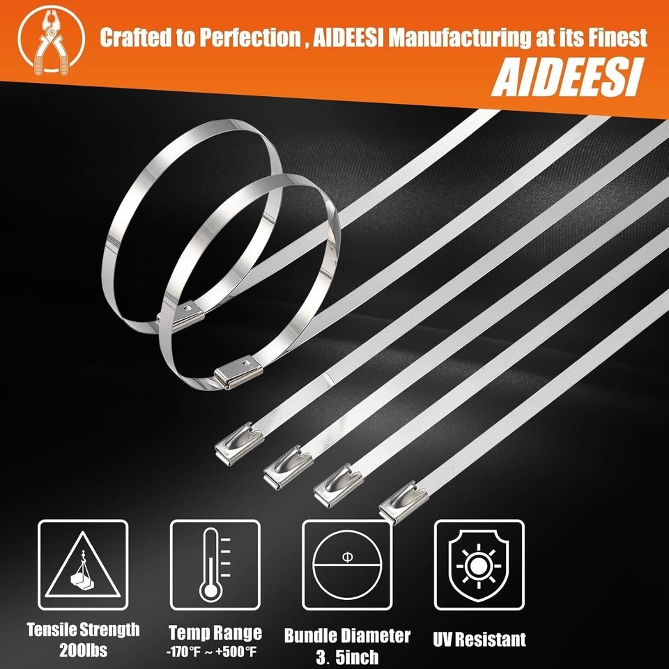 [Generous Quantity] Each pack contains 100 stainless steel zip ties, each measuring 11.8 inches in length. This abundant supply ensures you have more than enough zip ties to tackle multiple projects, making them suitable for professional use or personal needs.