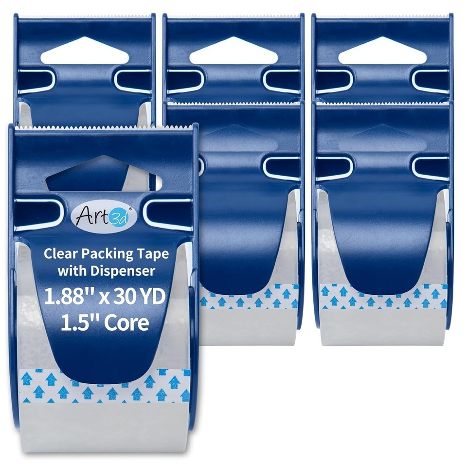 Art3d 1.88" x 30 yds Packing Tape 6 Rolls with Dispenser