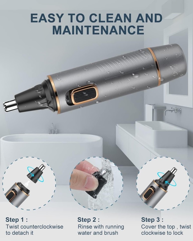 ?IPX7 Waterproof Easy Cleansing?: This cordless nose trimmer men, with washable and removable trimmer head for convenient cleaning and maintenance. Full body waterproof makes it free to trim while taking a shower