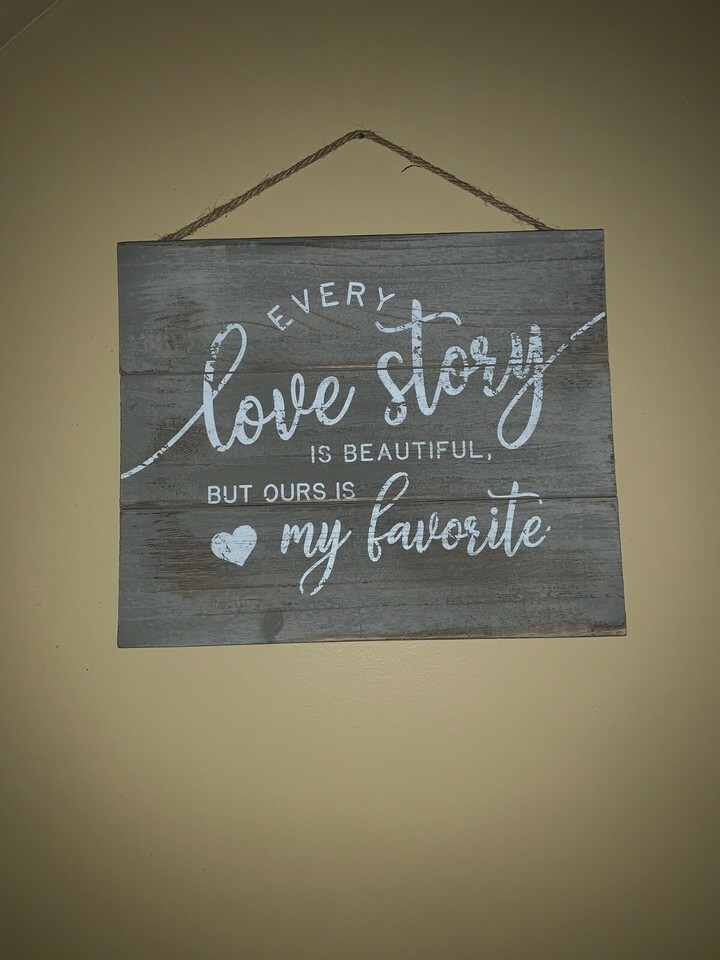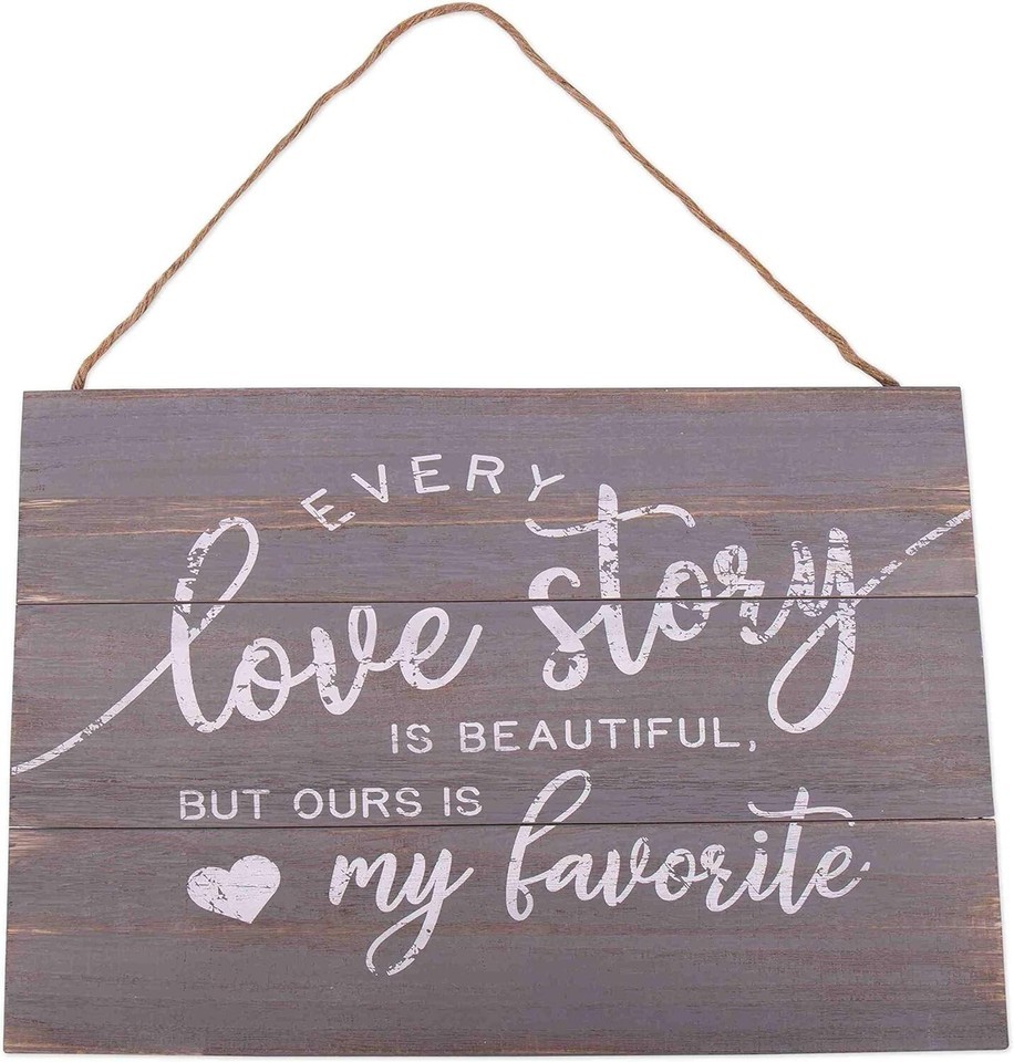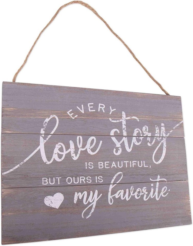 Love Story Wood Plank Hanging Sign