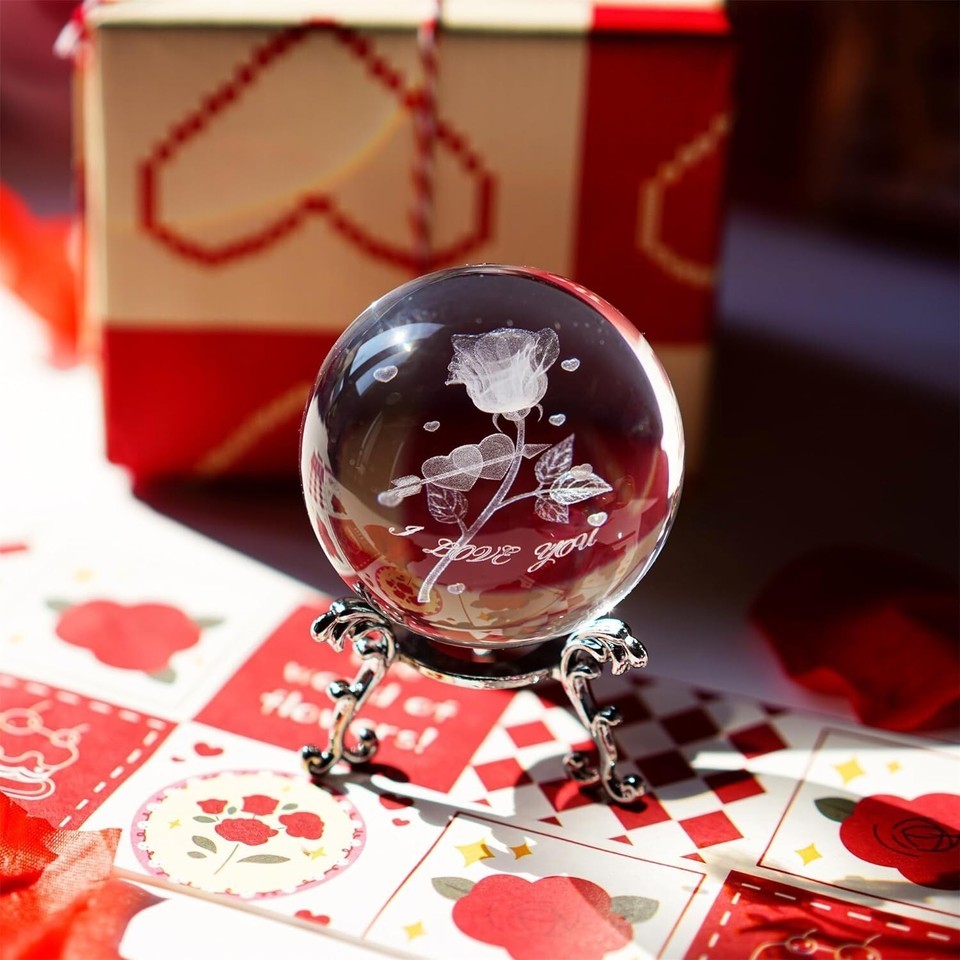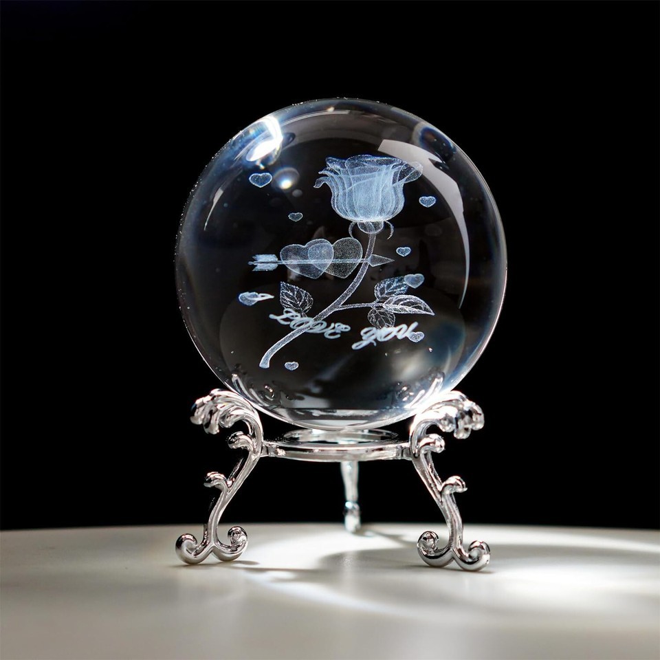 ?Craft process?We use advanced 3D laser technology to etched the flower into the crystal ball, it seems vivid and realistic