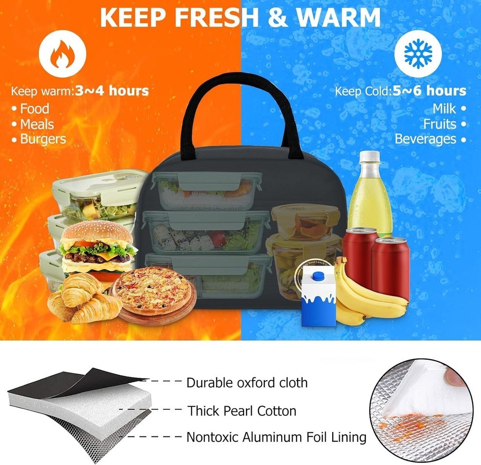 ???LIGHTWEIGHT PORTABLE LUNCH BOX?Our lunch box is light weight, padded handle, upgraded duarable smooth zipper, easy to clean, waterproof, Insulated, cooler, convenient. One front pocket design organize your napkin and personal stuff, such as your phone, bus card, tissue, ect.