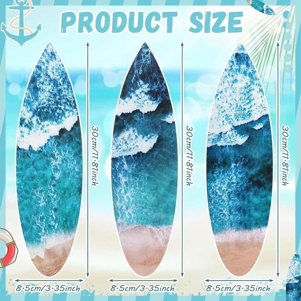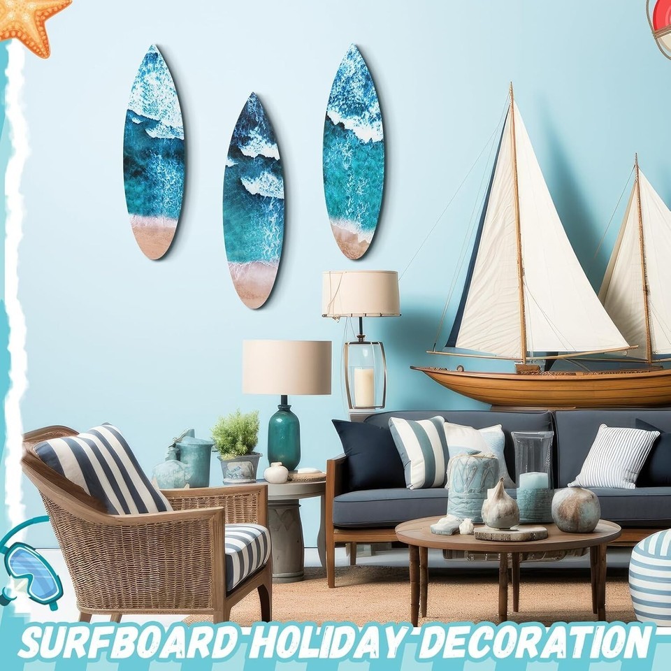 Stylish Patterns: the surfboard wall decorations are designed with surfboard shapes, printed with cute patterns, including 3 different wave patterns, creating a relaxed and enjoyable summer atmosphere