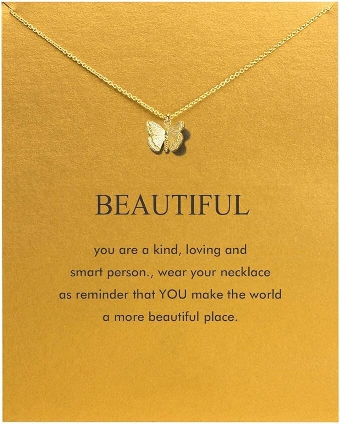 ?PERFECT GIFT IDEA?Packaged with a love heart envelope, a butterfly necklace as a sweet little accessory gift to get for your loved one or to a friend and more. Usually given for anniversary, for her birthday, Valentines,Christmas, Thanksgiving Day and more.