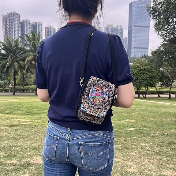 Cute, unique, retro style and handmade flower embroidery. 3 ways to wear: cross body shoulder bag, single shoulder bag and handbag. Moderate Size: The size of this bag is just perfect to use for walking around festivals or going shopping when you don't want to carry a huge bag.