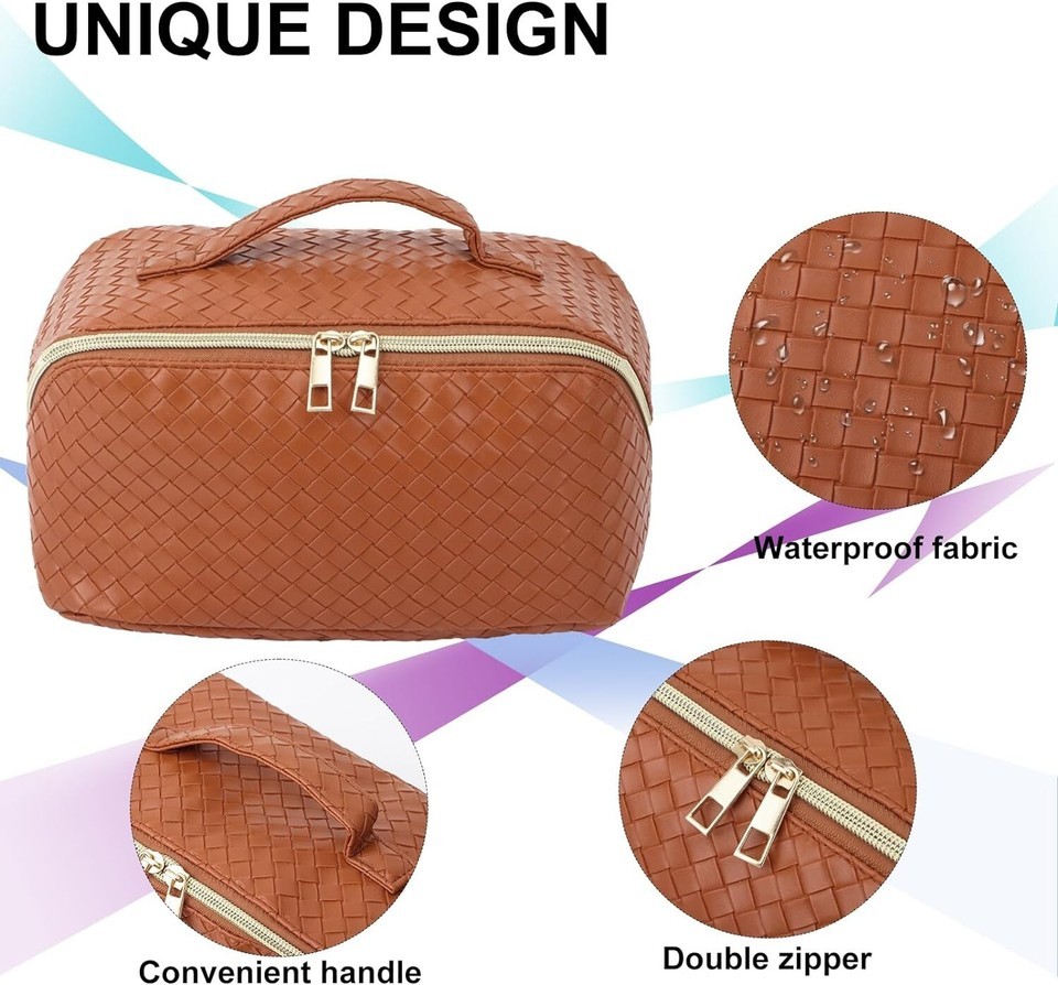 Elegant Makeup Bag: Checkered appearance, fashionable and unique; Double zipper and 180 degree opening and closing design for easy access. The handle feels comfortable and easy to carry.
