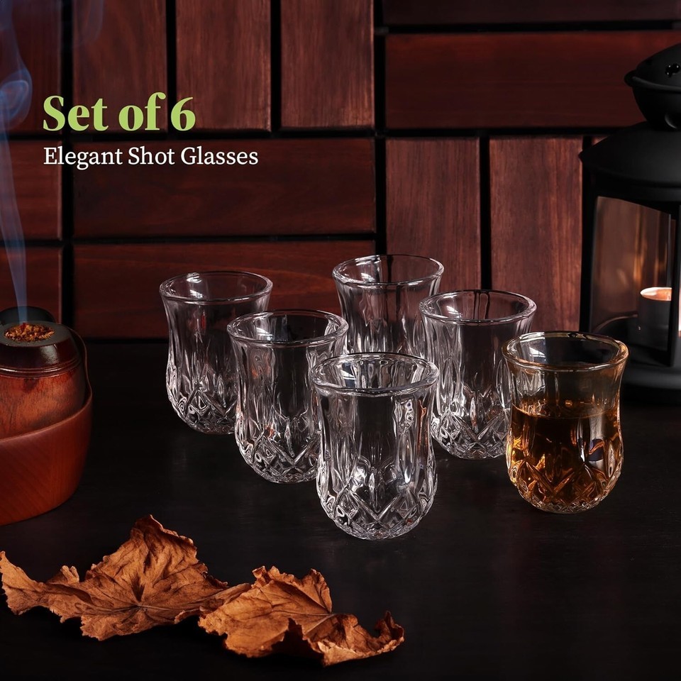 Shot Glass Set of 6 Elegant Diamond Patterned Shot Glasses 1.75 oz