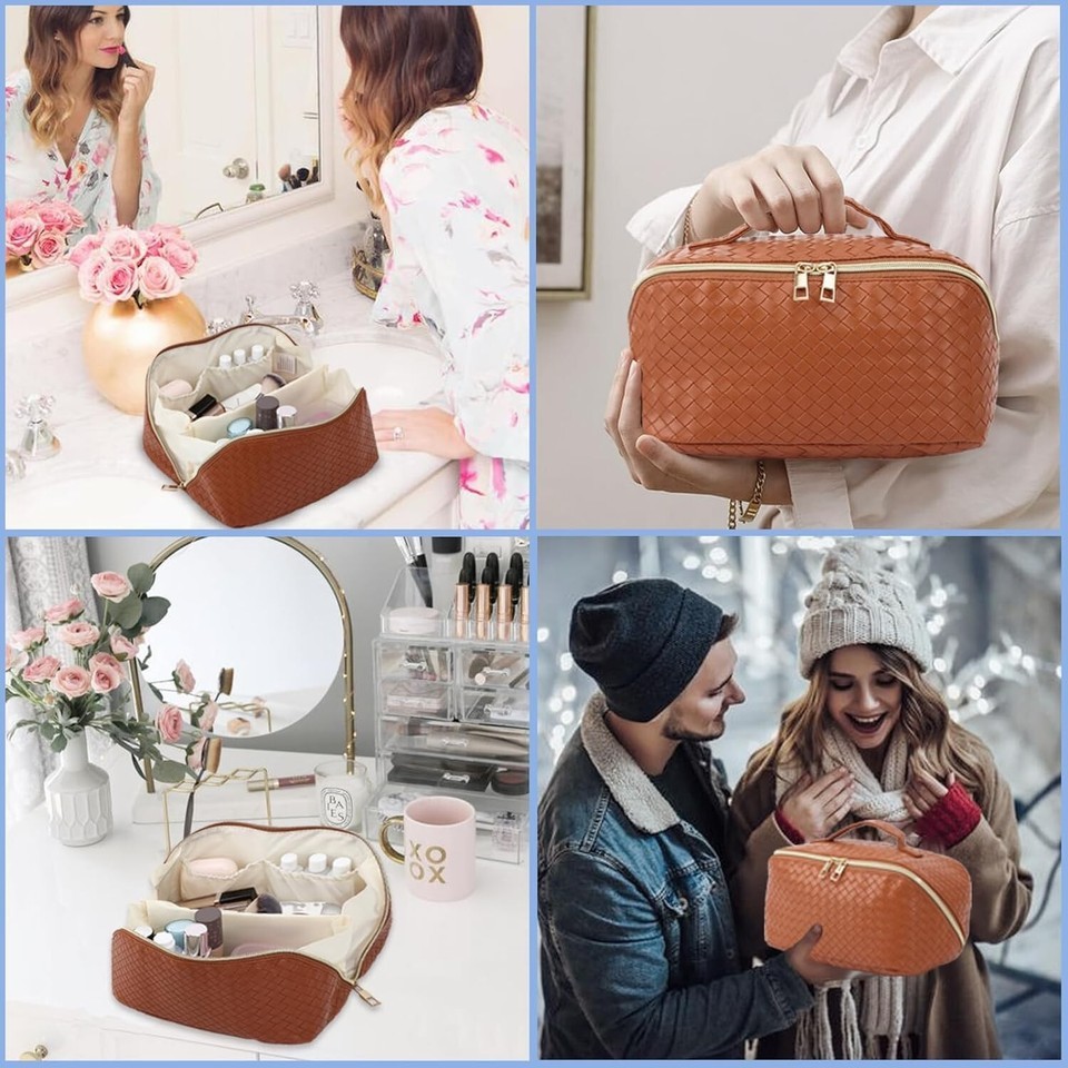 Elegant Makeup Bag: Checkered appearance, fashionable and unique; Double zipper and 180 degree opening and closing design for easy access. The handle feels comfortable and easy to carry.