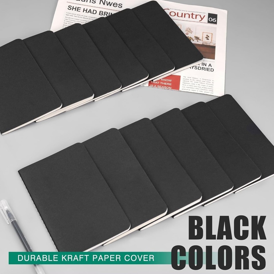 Package Includes: 12 Tiny notebooks, pocket size, black cover, each with 30 sheets/60 pages