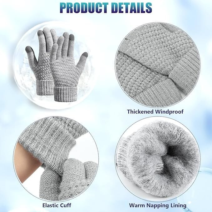 Package Includes: Coming with 2 pairs of winter gloves women in each pack: Black/Grey, classic and popular all the time. You can choose any one to match your day's wearing.