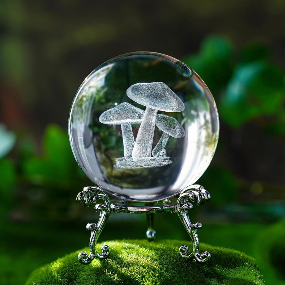 3D Etched Mushroom Crystal Ball Paperweight and 48 similar items