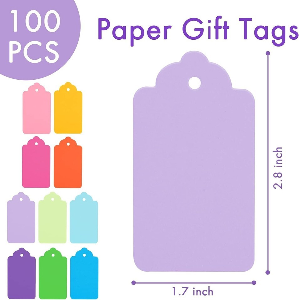 What You Will Get - You will get 100 PCS paper tags in 10 different colors, the package also comes with 100 PCS hanging strings. Each paper tag measurs 2.8 x 1.7 inches.