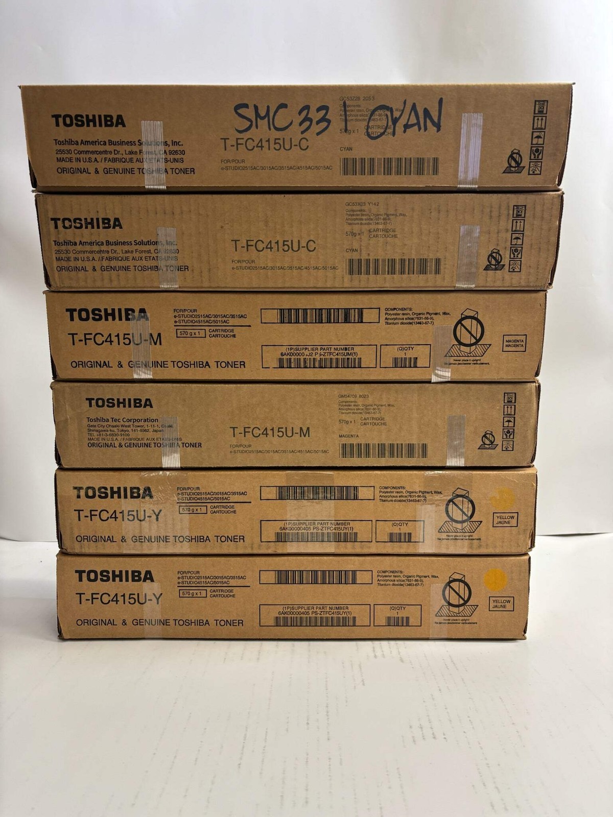 6 New Genuine Toshiba E Studio 2515AC,3015AC CCMMYY Toners T-FC415U (No Black)