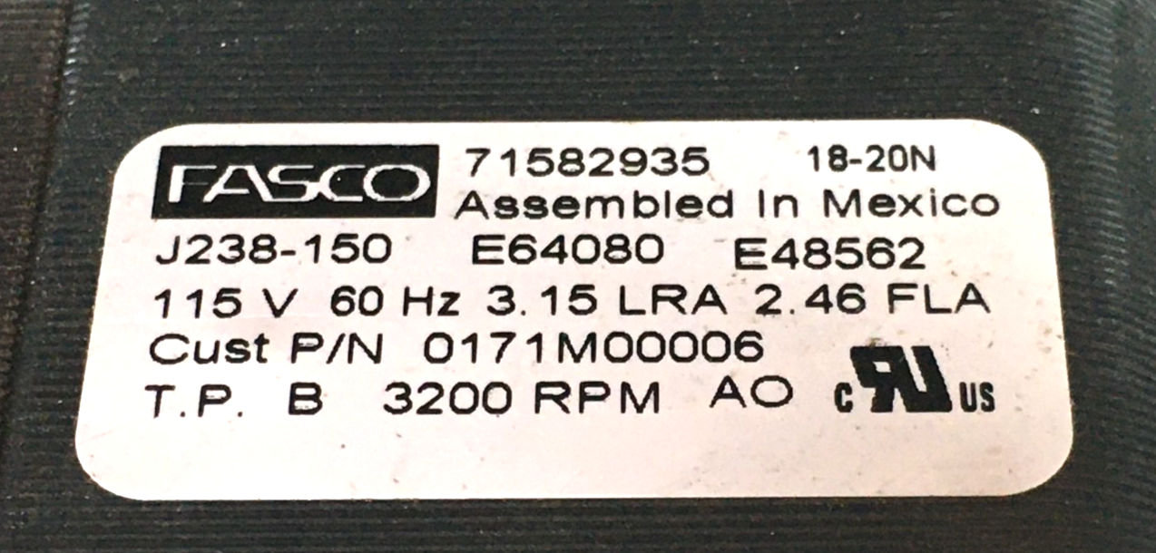 This isFASCO 71582935 Furnace Inducer Vent Motor 70582935 0171M00006 J238-150 115V 3200 RPM used motor.