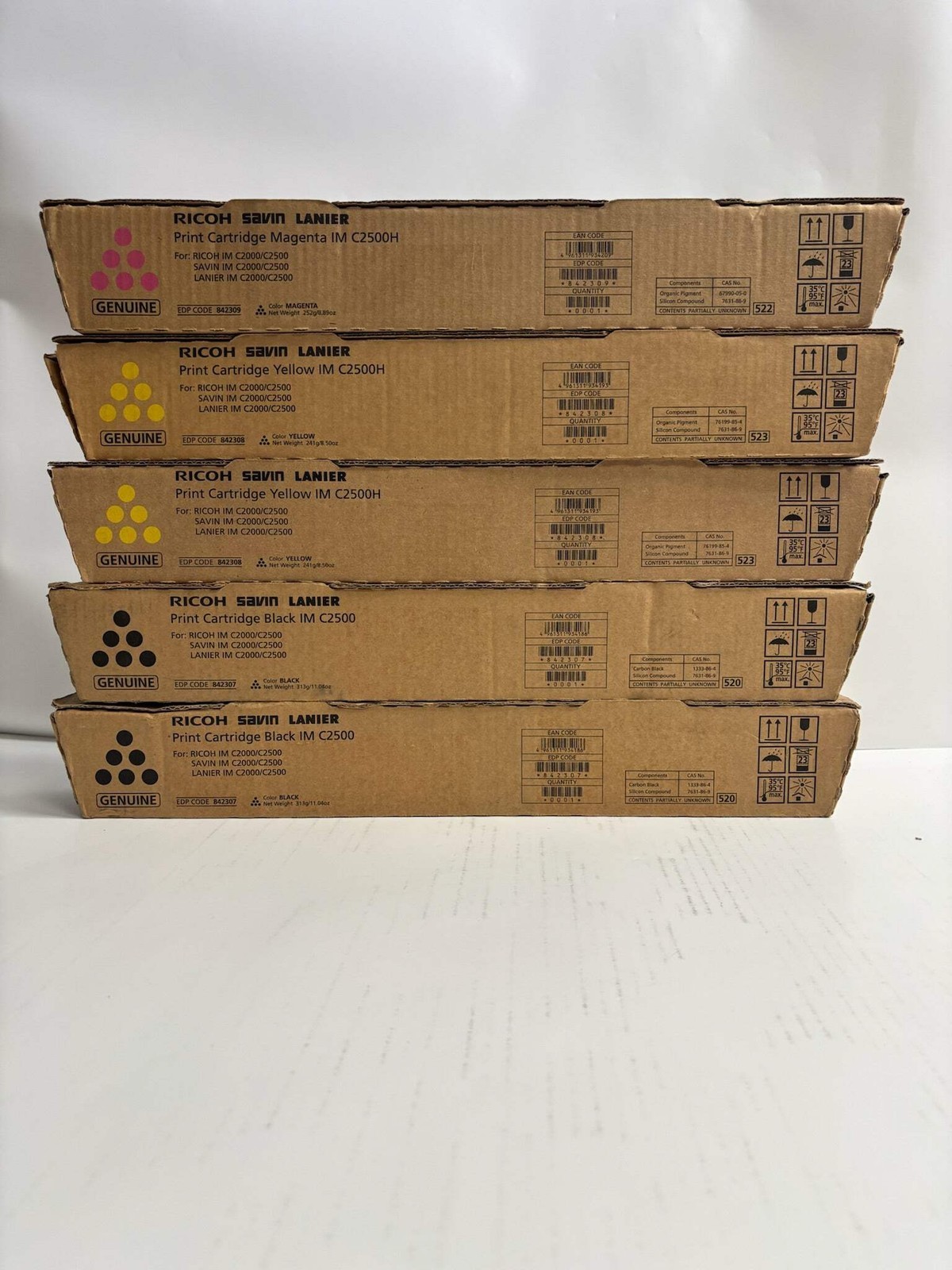 5 Genuine Ricoh IM C2500H, IM C2000 MYYKK Toners 842307,842308,842309 (No Cyan)