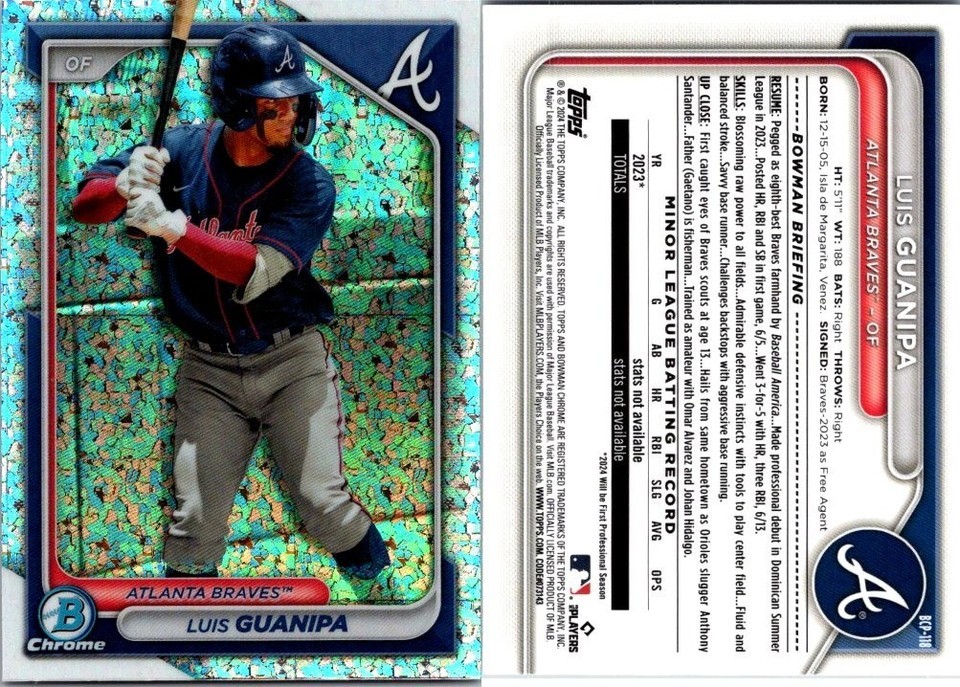 2024 Bowman - Chrome Prospects Luis Guanipa #BCP-118 Speckle Refractor /299 (RC)