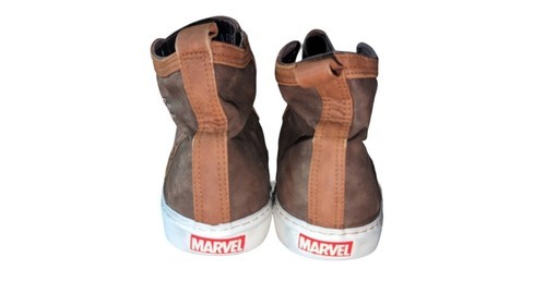 Step up your shoe game with these Marvels "GROOT" hightop sneakers. The round toe and lace-up closure provide a comfortable fit for casual occasions. The brown synthetic upper material is accented with a solid pattern and Groot character design. The rubber outsole ensures durability, while the fabric lining material provides added comfort. These shoes are available in UK size 9 and US size 10. The Marvel brand adds a touch of excitement to this casual sneaker style. Perfect for men who want to add a unique touch to their shoe collection.