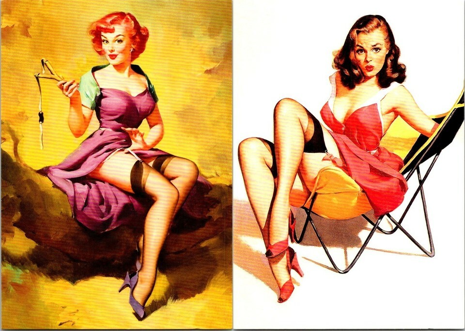 The product is a lot of 2 6"x4" canvas postcards featuring reproductions of Gil Elvgren's 1994 sexy pin-up art. The postcards were manufactured in the United States. This collectible set would be a great addition to any pin-up art enthusiast's collection, showcasing the iconic and alluring style of a bygone era with a contemporary twist.