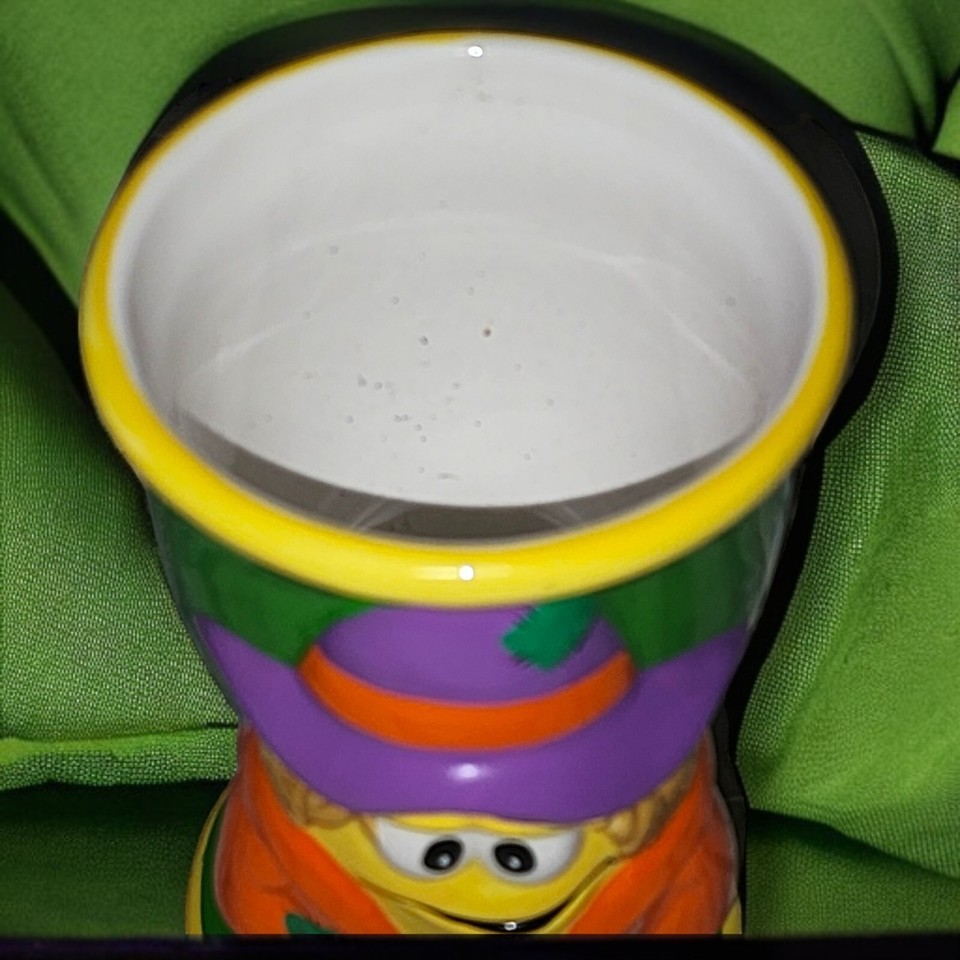 This Galerie M M's Ceramic Halloween Green Yellow Goblet features a 3D design of a yellow wizard with the iconic M M's logo. The bright yellow color and candy nuts theme make it a perfect addition to any collection or a unique gift for Halloween. It is an original piece made in China and is perfect for collectors of M M's memorabilia or candy advertising items. Add this to your collection today!