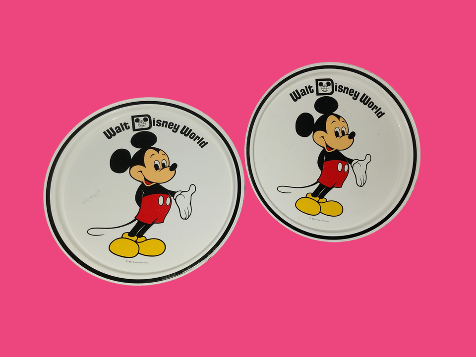 Two (2) Vintage Disneyland Walt Disney 11" Mickey Mouse Metal Tin Plates