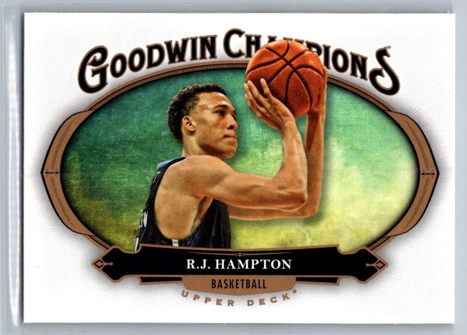 The product is a 2020 Upper Deck Goodwin Champions #97 basketball trading card featuring R.J. Hampton, a player from the NBA. It is a non-autographed, non-memorabilia card from the rookie season of 2020. Manufactured by Upper Deck, this sports trading card is a collectible item for fans and collectors of basketball memorabilia.
