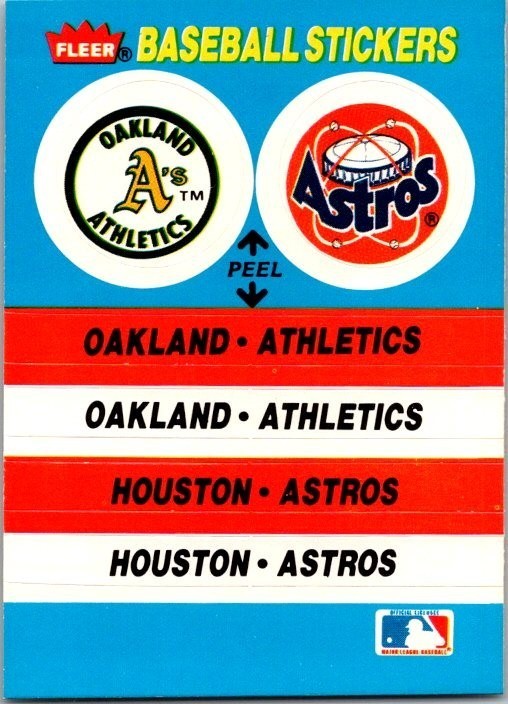 1988 Fleer Team Stickers Oakland Athletics/Houston Astros #NNO