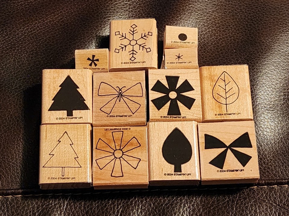 Stampin Up Retired Wood Mounted SHAPES SHADOWS Tree Snowflake Butterfly
