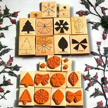 Stampin Up Retired Wood Mounted SHAPES & SHADOWS Tree Snowflake Butterfly