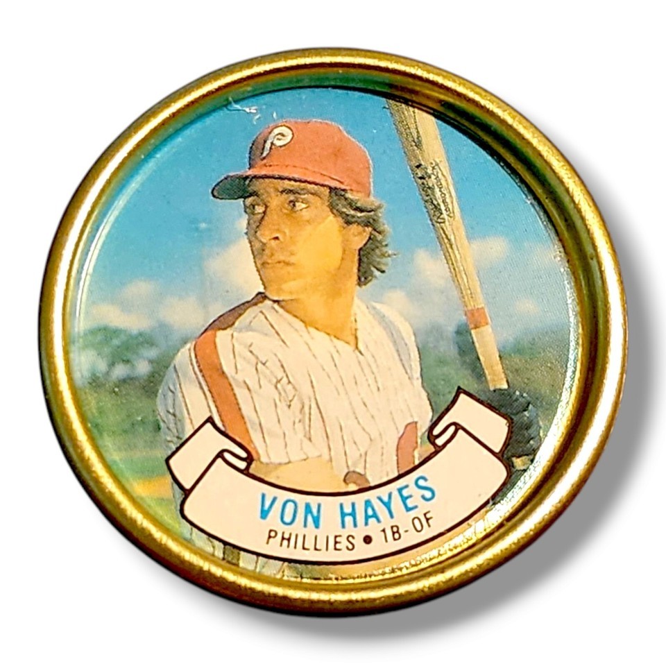 Step up to the plate with the 1987 Topps Baseball Coin featuring Von Hayes of the Philadelphia Phillies. This collectible card, number 35 in the series, celebrates an iconic season in Major League Baseball. A must-have for any baseball aficionado, the card captures the essence of the sport and the player's significant impact on the game.