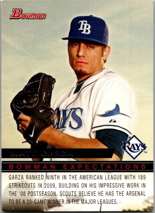 Capture a piece of baseball history with the 2010 Bowman Expectations #BE40 card featuring Matt Garza and Jeremy Hellickson. Representing the Tampa Bay Rays, this card is a must-have for collectors and fans alike, highlighting two notable pitchers from the 2010 season. The card is crafted from quality card stock and is part of the esteemed 2010 Bowman set, reflecting a commitment to excellence by Bowman, a trusted name in sports trading cards.