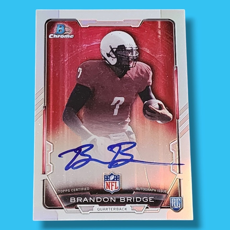 Discover the 2015 Bowman Chrome Refractor Brandon Bridge Rookie Autograph Card #RCRA-BB, a must-have for football enthusiasts and collectors alike. This exceptional piece from the 2015 Bowman Chrome set features the promising talent of Brandon Bridge, capturing the essence of his rookie season.