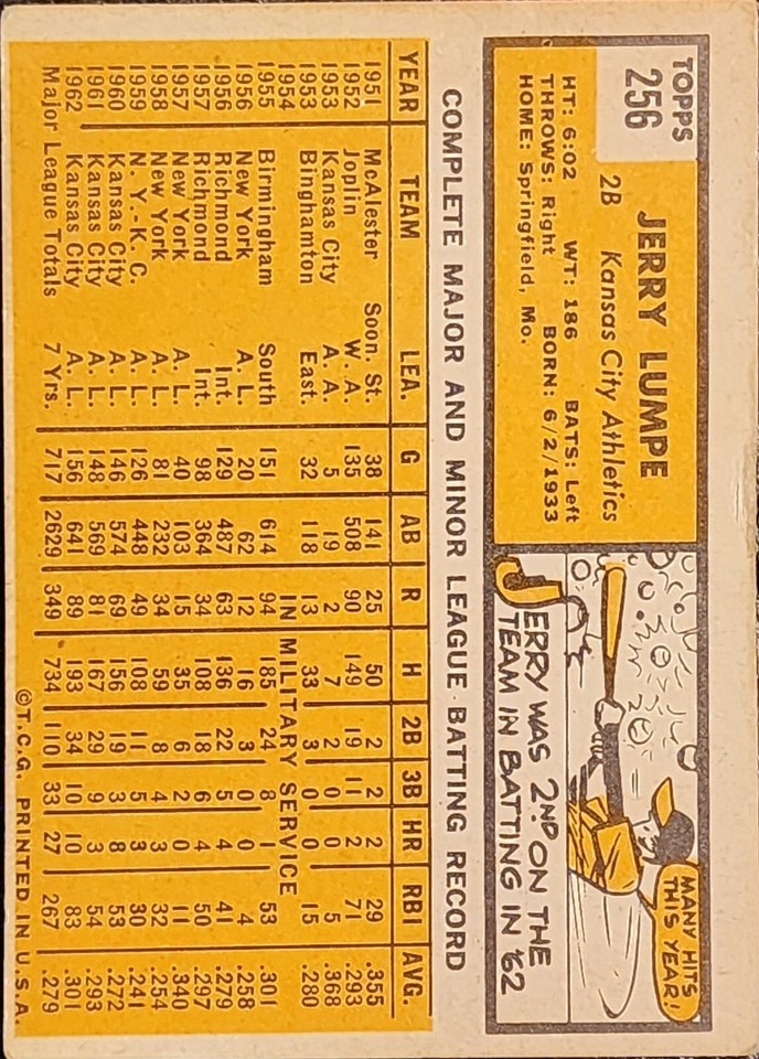 1963 Topps Jerry Lumpe (Kansas City Athletics) #256 VG/EX