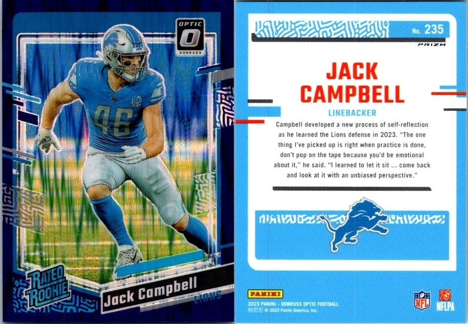 2023 Panini Optic Rated Rookie Jack Campbell #235 Purple Shock Prizm RC