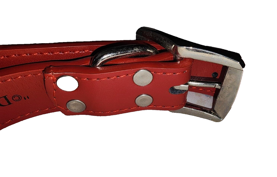 Mickey Mouse Disney Red Leather Dog Collar Chrome Buckle Ring 16"-21" Neck