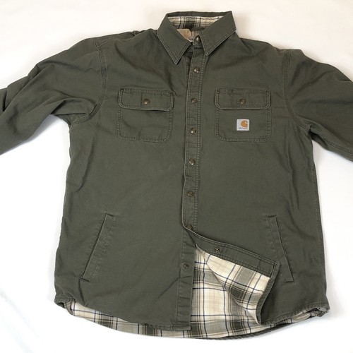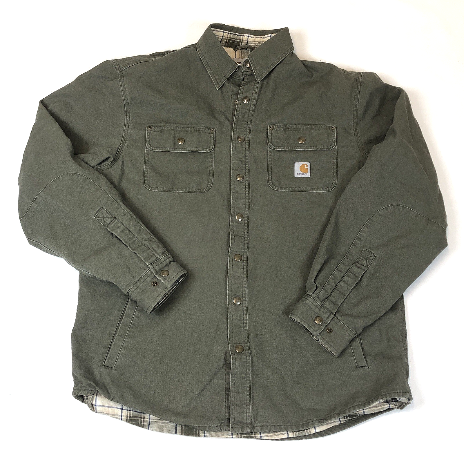 Carhartt Mens Green Snap Flannel Lined Shirt Jac Shacket
