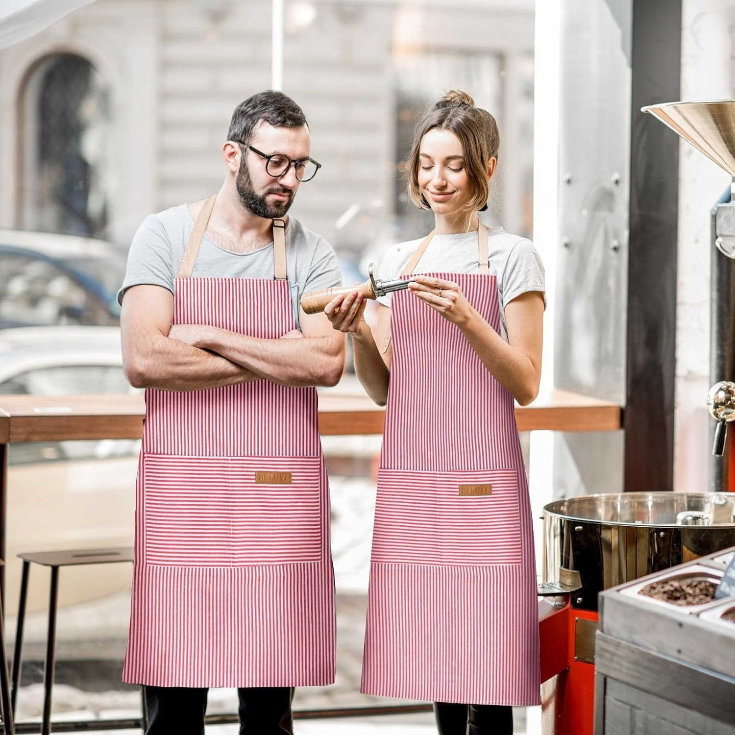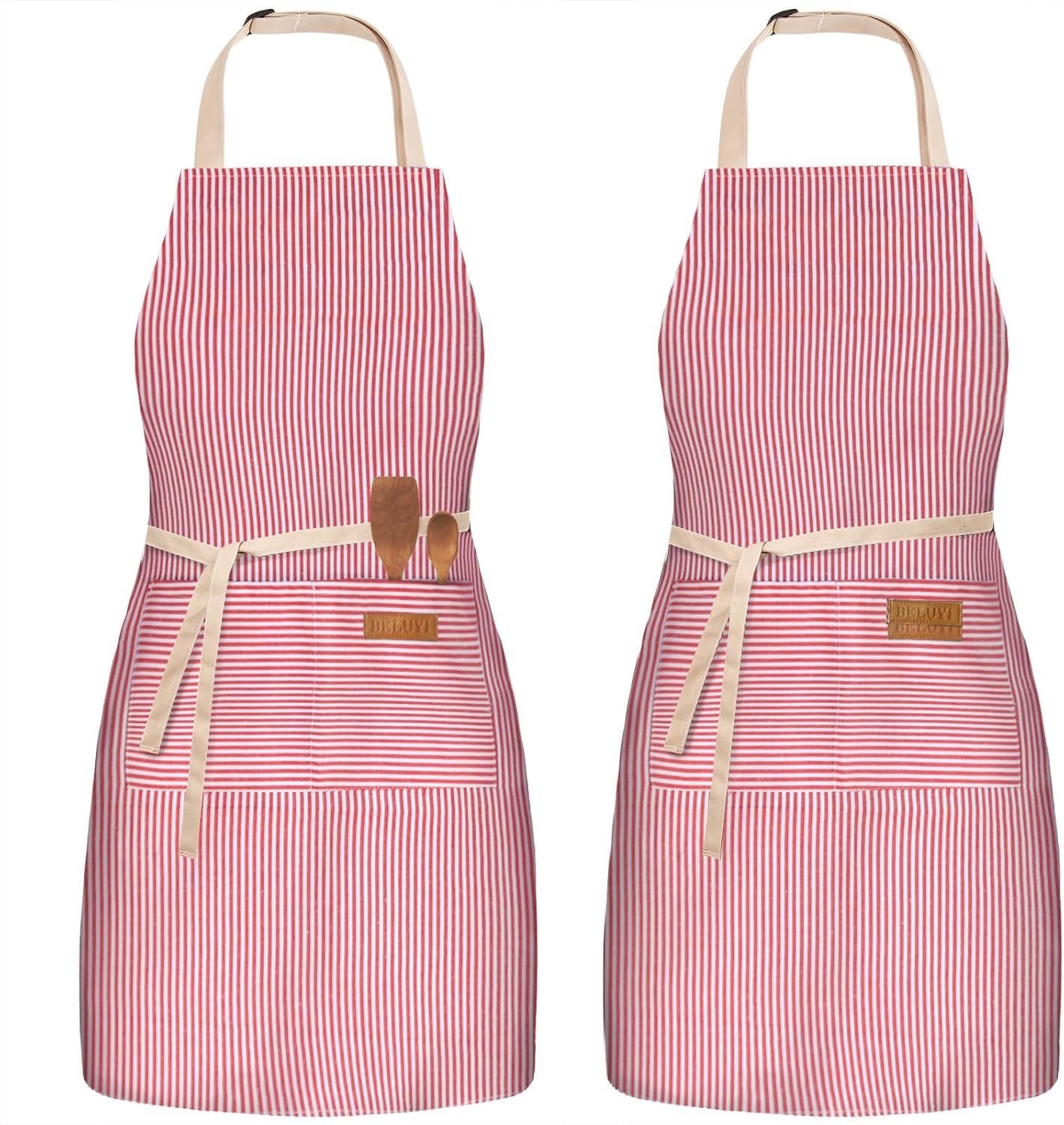 Machine Washable 2 Pack Bib Aprons with Pockets for Stylish Cooking Protection