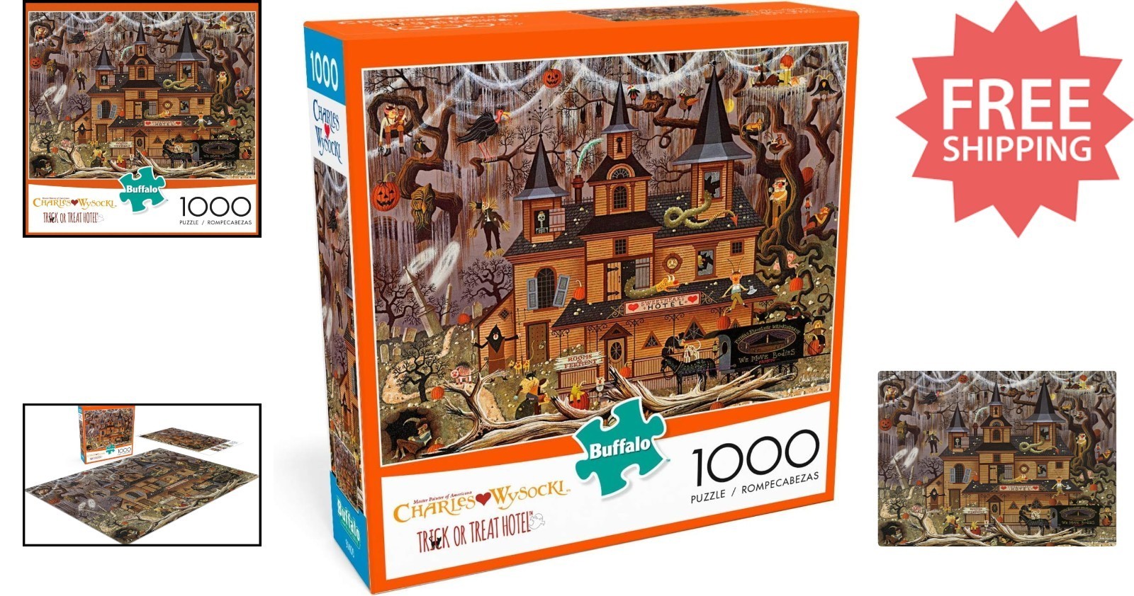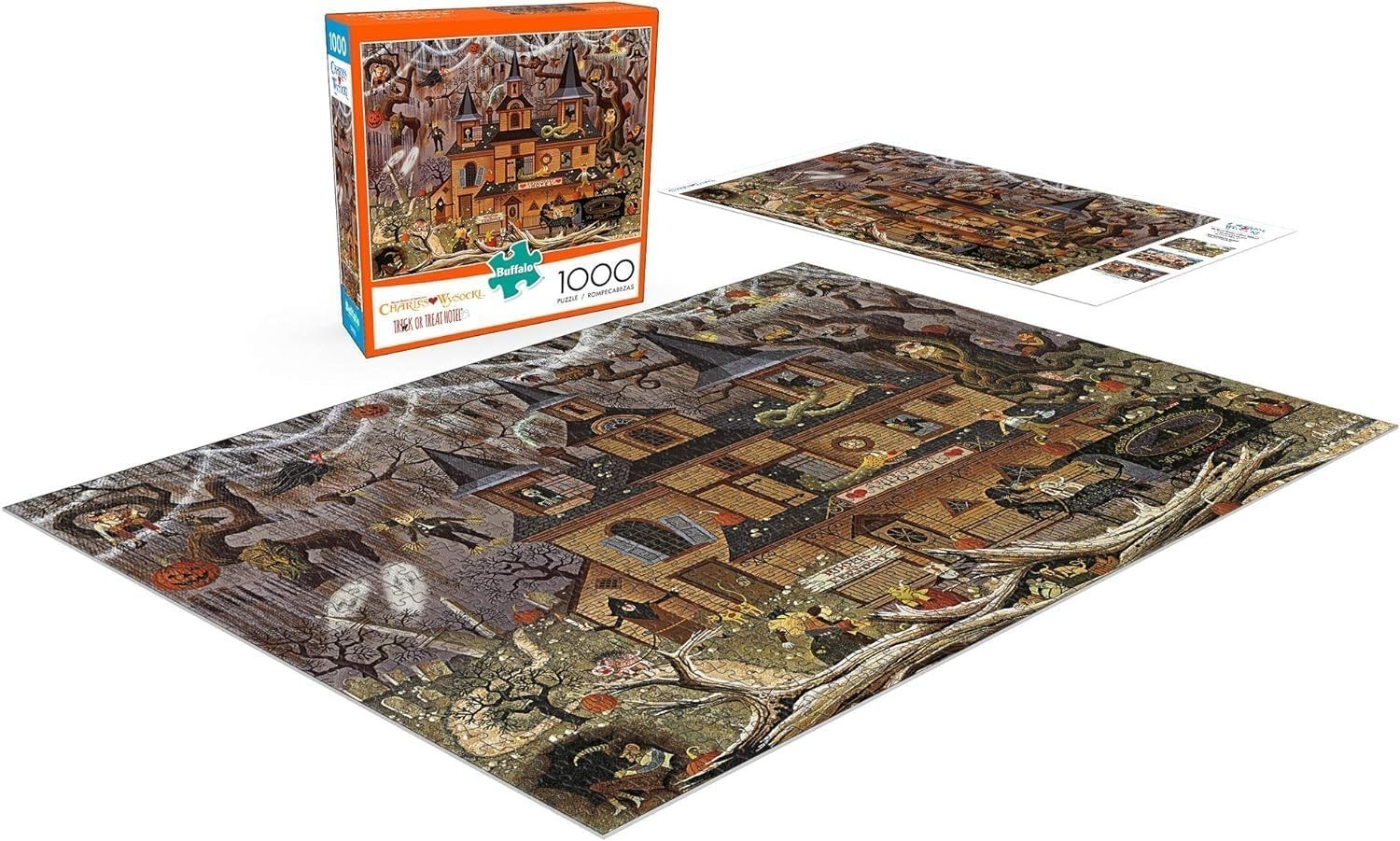 Engaging 1000 Piece Jigsaw Puzzle: Trick or Treat Hotel by Charles Wysocki