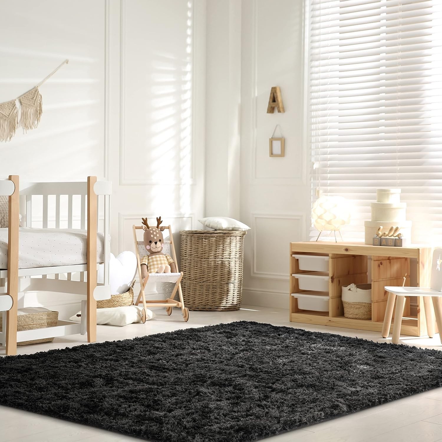 Cozy Black Shaggy Rug 2'11" x 1'11" – Ideal Indoor Carpet for Comfort & Warmth