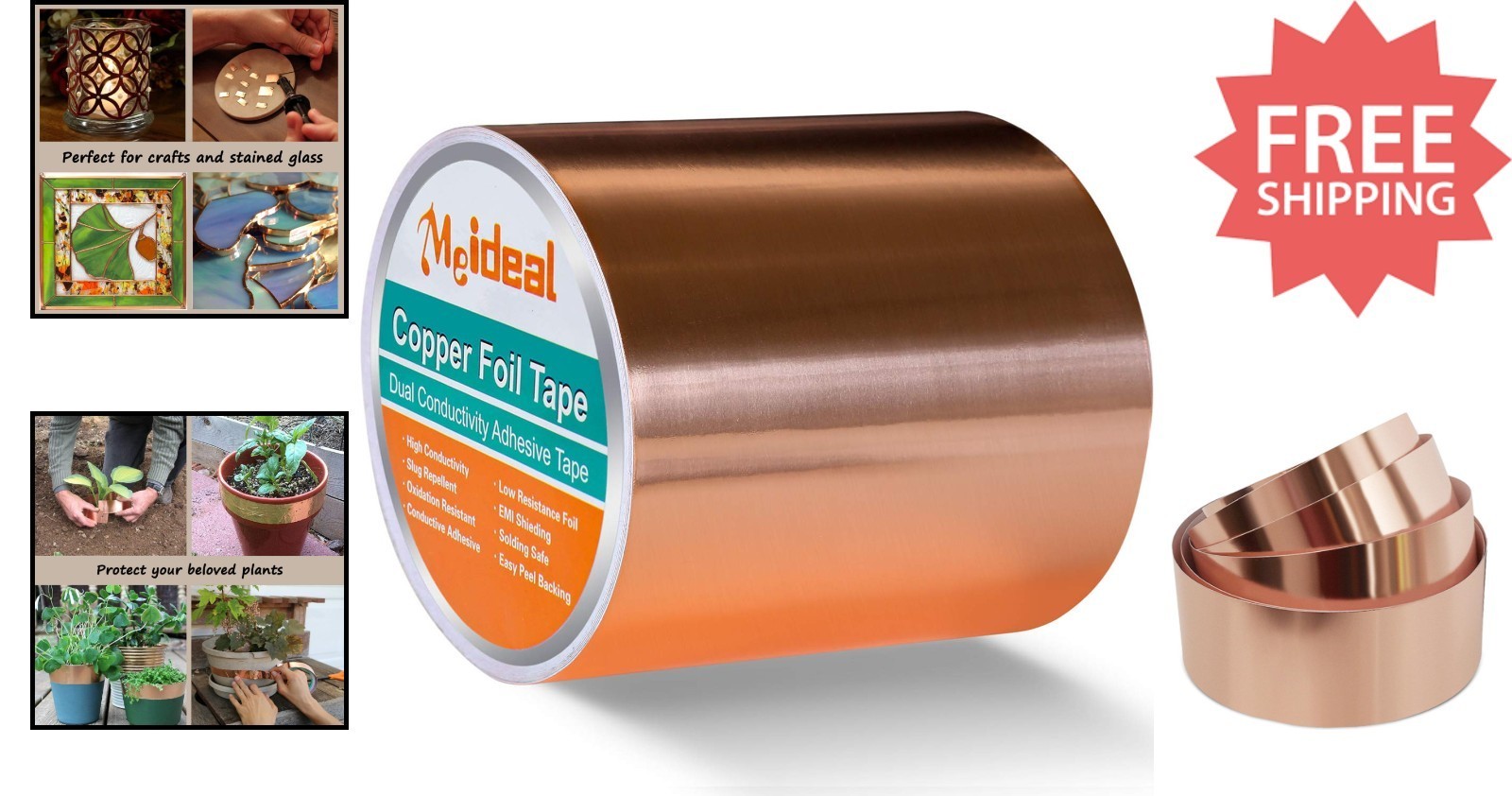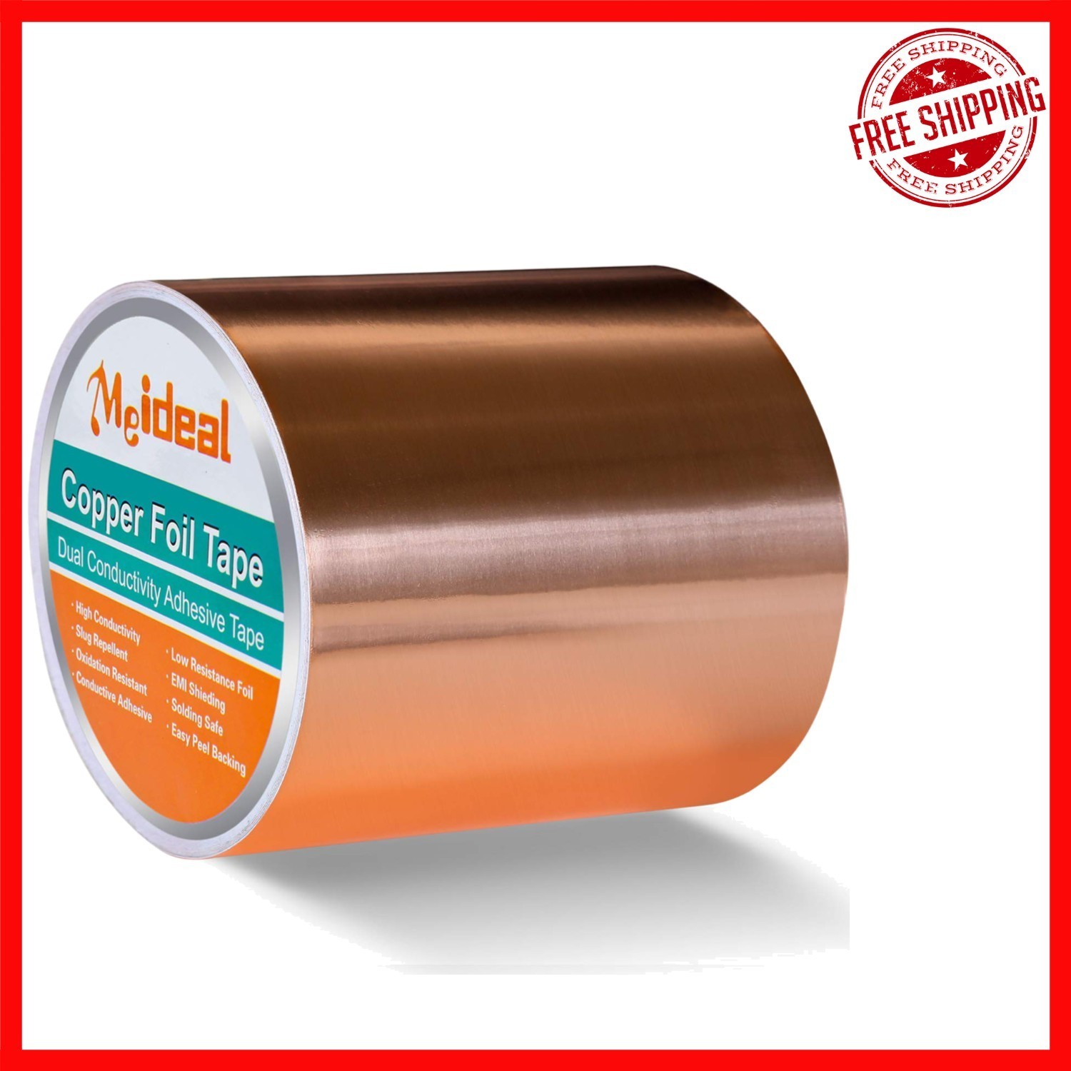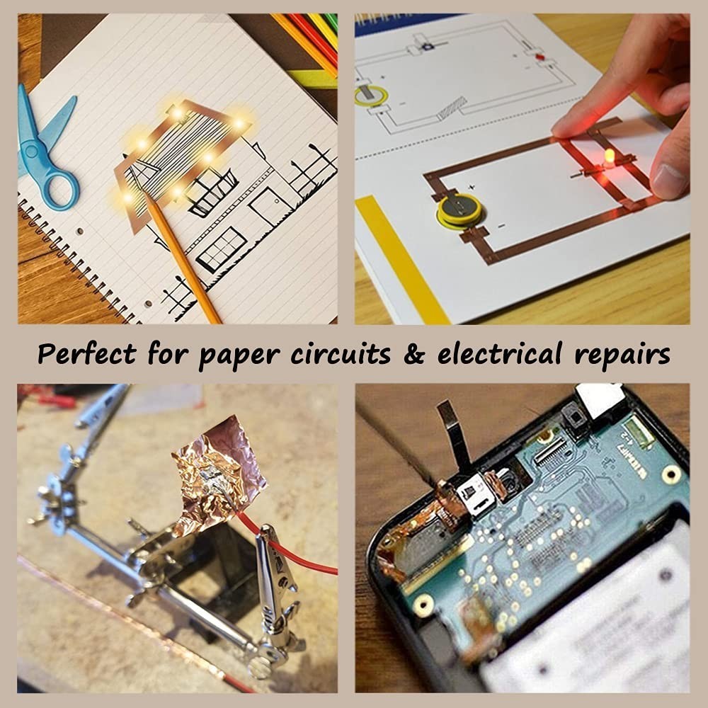 Discover the versatile Meideal Double-Sided Conductive Copper Foil Tape, crafted from pure copper foil for superior conductivity and durability. Its dual conductivity design allows current to flow through both sides, ideal for electrical repairs, paper circuits, grounding, and more. Flexible and easy to shape, it is perfect for DIY crafts, stained glass art, and educational projects, making it a favorite among hobbyists and professionals alike. Specifically beneficial for guitarists, it effectively eliminates buzz and noise for a clearer tone. Each roll measures 100mm x 10m, suitable for various indoor and outdoor applications including electronics, home decor, and gardening.